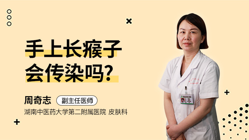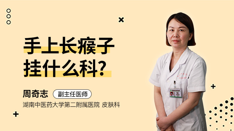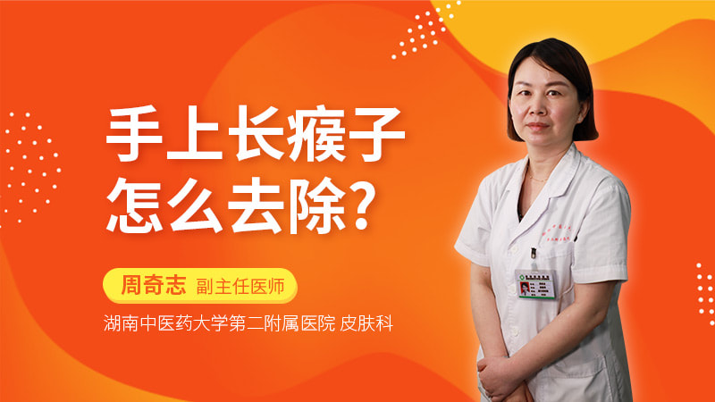 手上长瘊子,也就是我们通常所讲的寻常疣,它是一种由HPV病毒感染而导致皮肤的一种良性赘生物。那么临床有各种各样的形态,这种是属于我们皮肤科的范畴。那么典型的寻常疣可以表现为黄豆大小、或者是更大的、与皮肤颜色一致,或者是棕褐色的丘疹,表面的特点是比较粗糙,摸上去的硬度要比周围的皮肤要硬一些。那么这是我们皮肤科的一种常见的病毒性的疾病,所以对于手上长瘊子的患者来说,到我们皮肤科就诊就可以了。